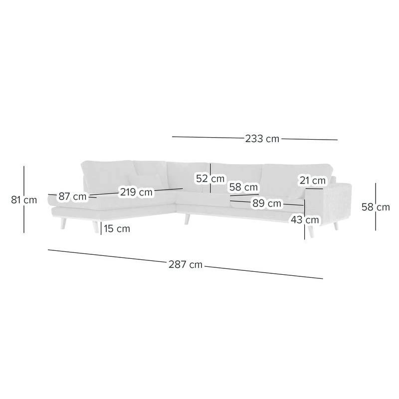 - Profondeur de la méridienne longue : 219 cm