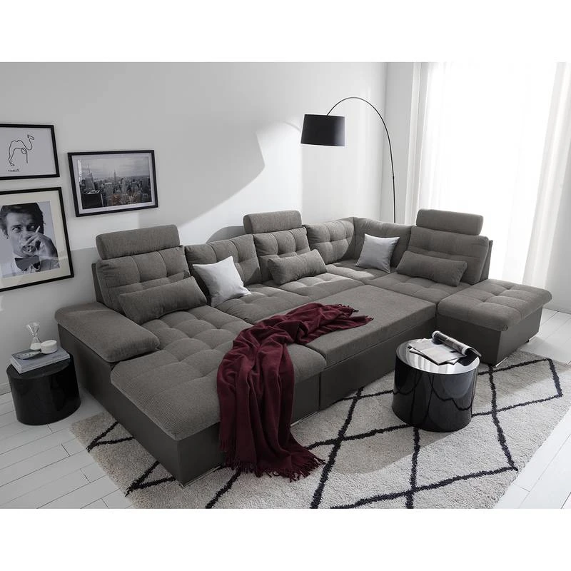 - Canapé panoramique avec 6 coussins de dossier et 3 coussins lombaires, sans accessoires