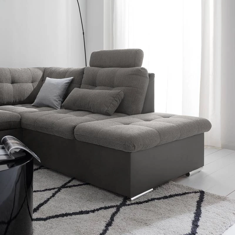 - Assise, dossier et coussins : tissu structuré doux et agréable, 100 % polyester