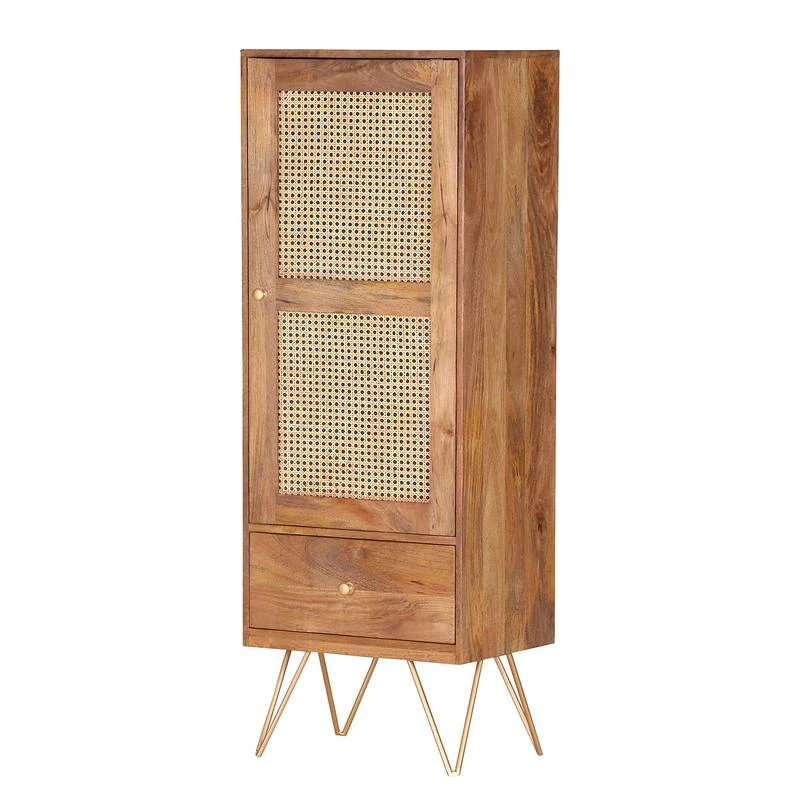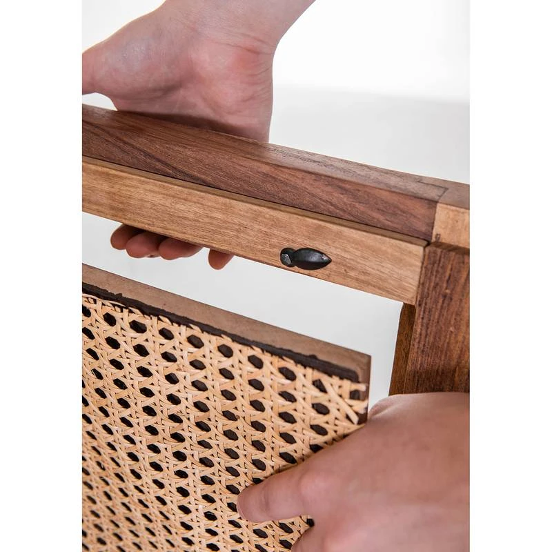 - Façade : rotin / Manguier massif teinté et verni